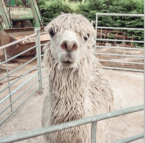 The only Suri alpaca in the herd. Very talkative especially when being walked & dinner time. Very good with children & loves to be walked.
